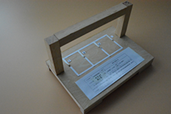 这个作品是一个磁感应桌子,其中的一个桌角下面装有若干个强磁铁……