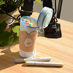 该个作品是一个吸尘的笔筒,灵感来源于桌面很容易有小橡皮屑和废纸片,需要定期清理